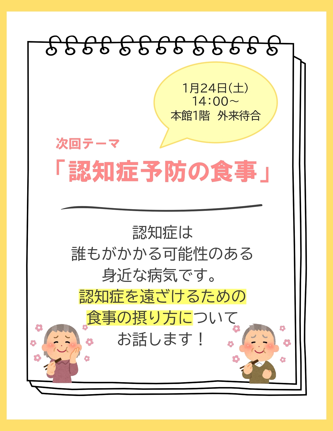 次回のセミナーでは、認知症予防に効果のある食材や脳と腸の関係について当院の管理栄養士がわかりやすく解説いたします。