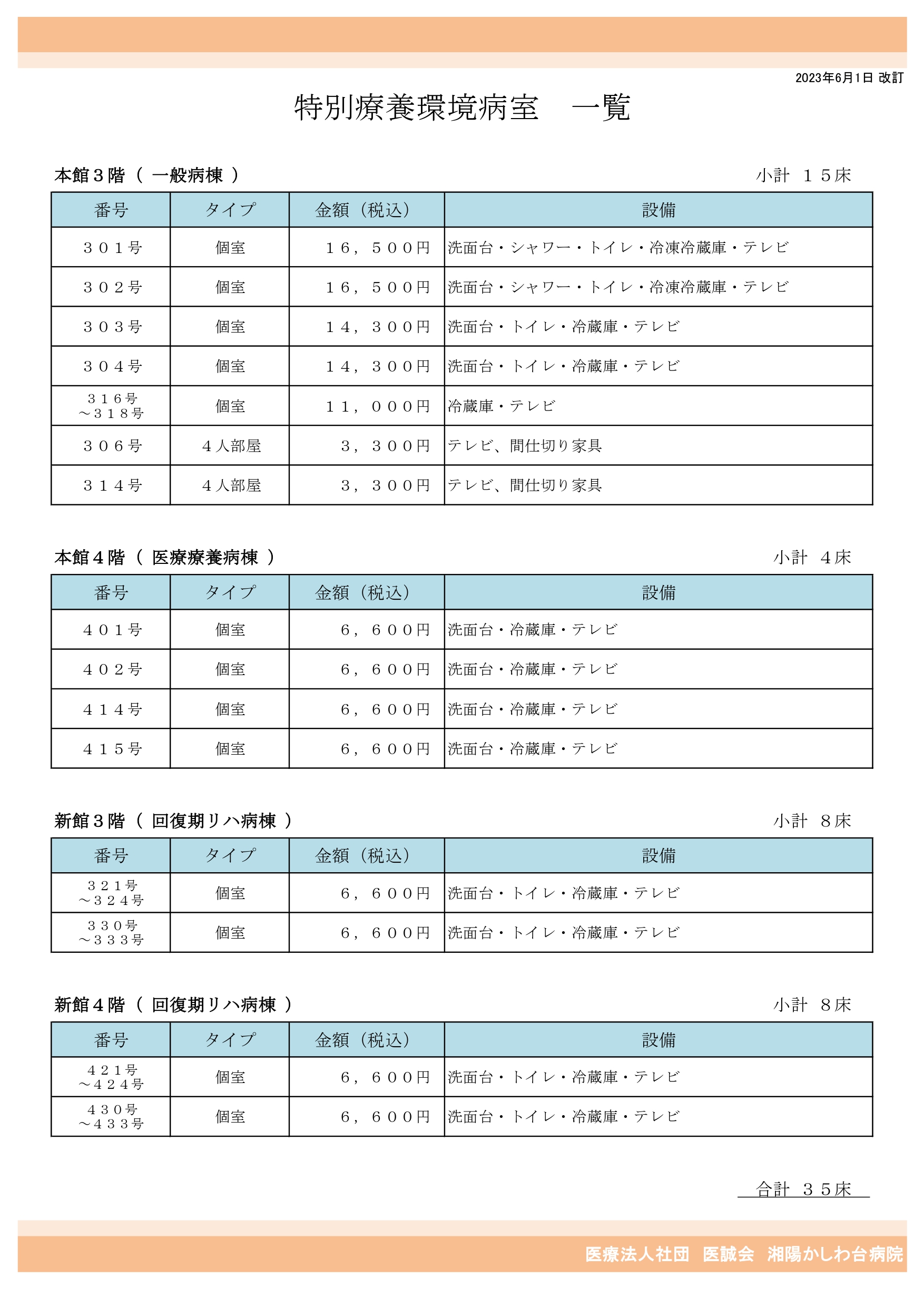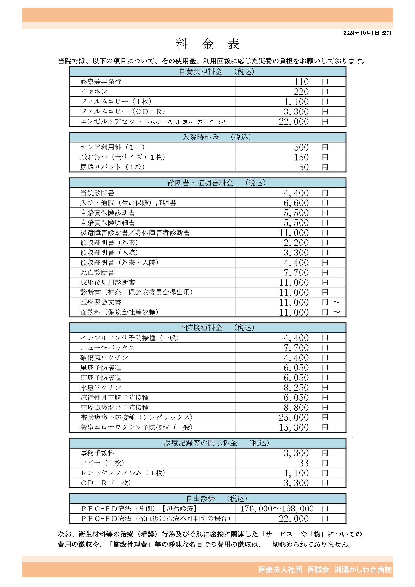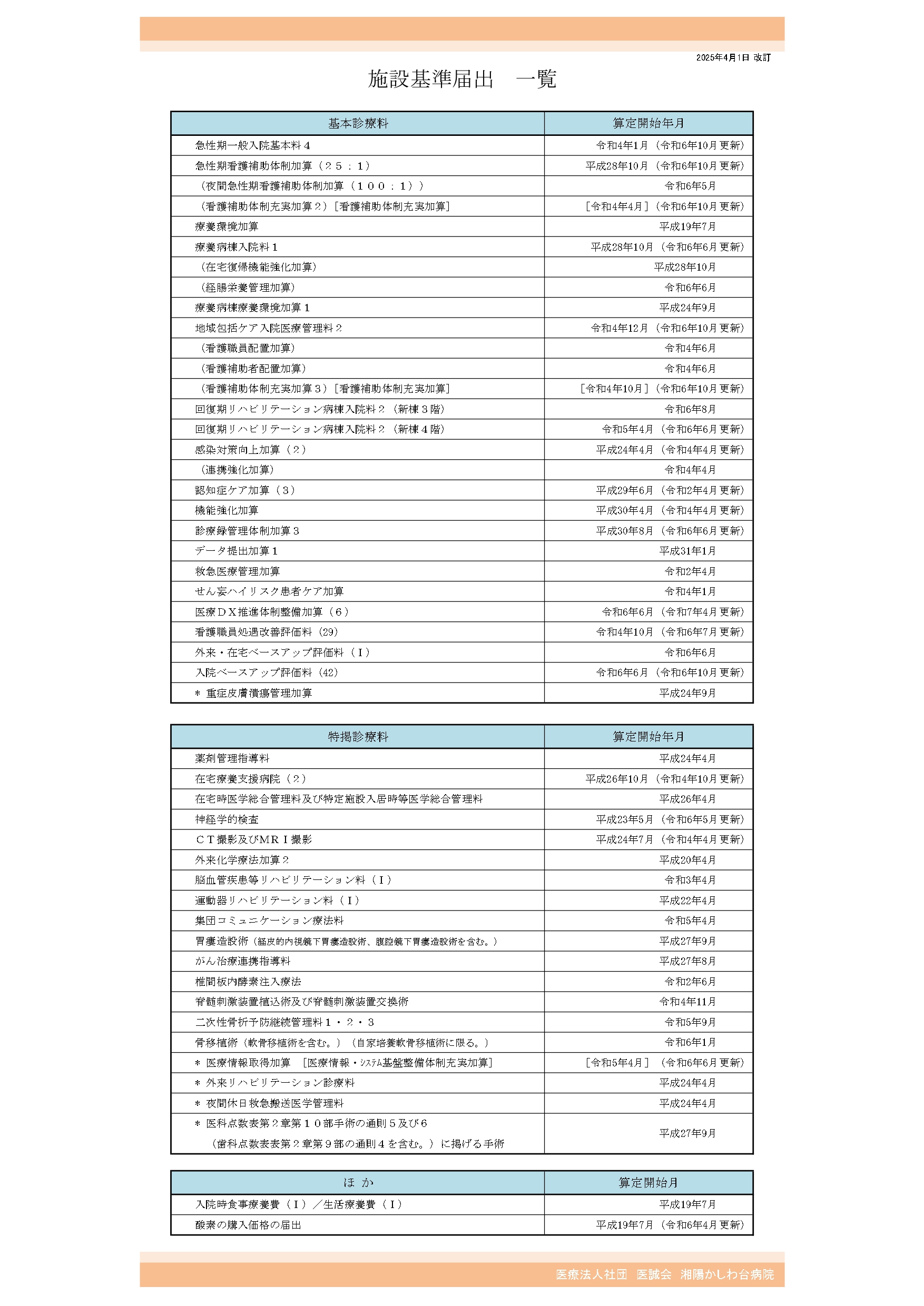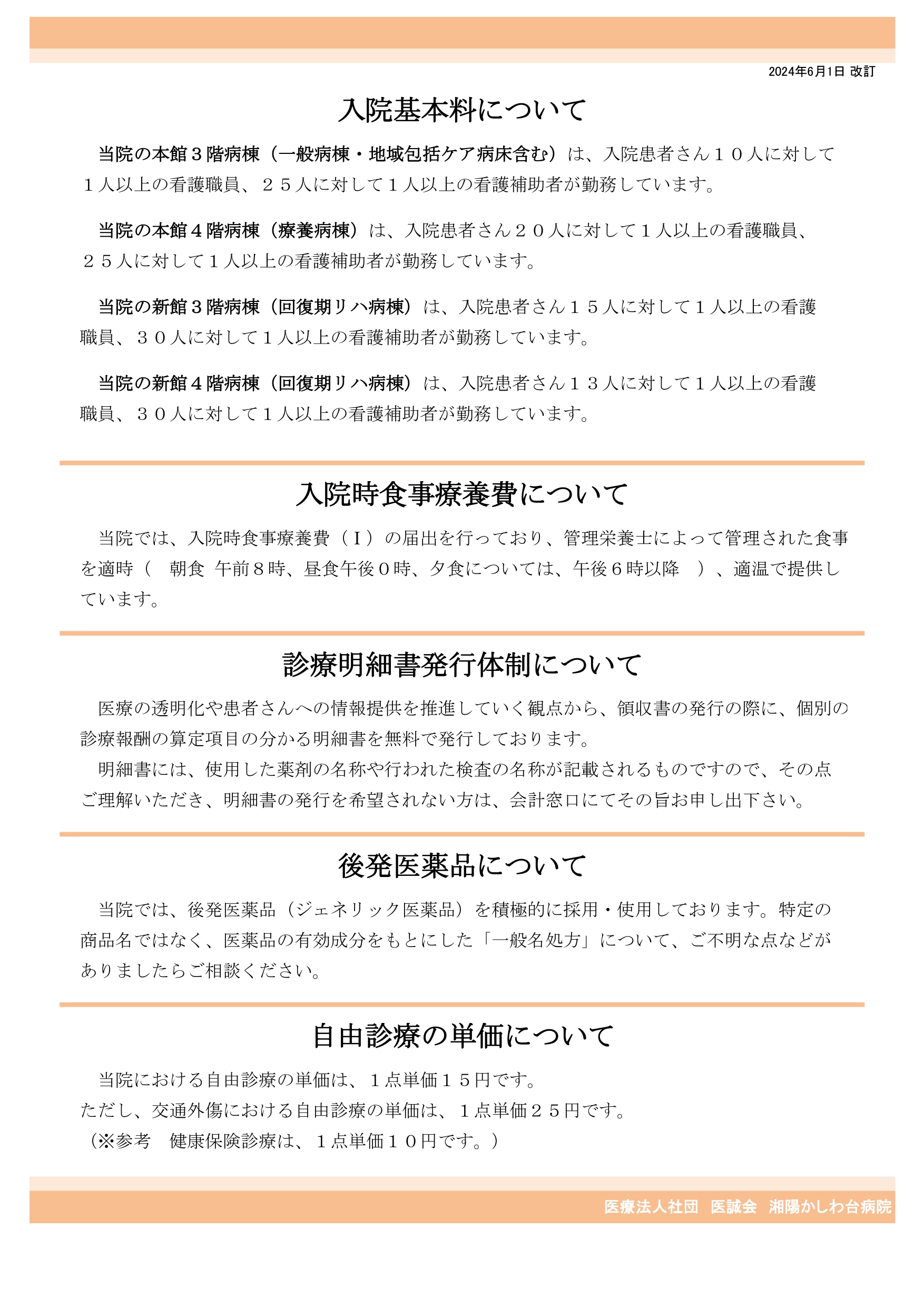 | 病院概要 | 施設基準 | 料金表 |