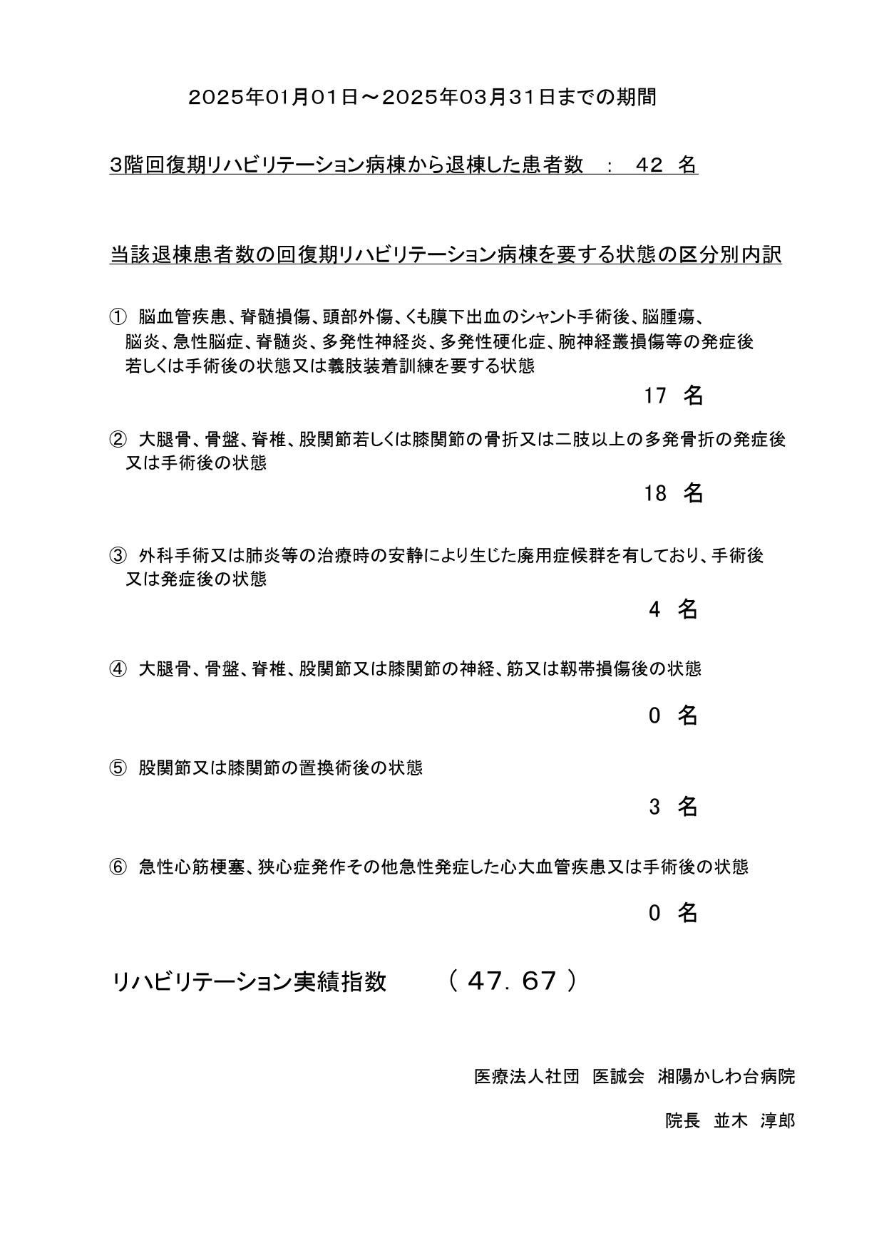 | 一般名処方加算 | 生活習慣病管理料 | 回復期病棟(新棟3・4階)実績指数 |