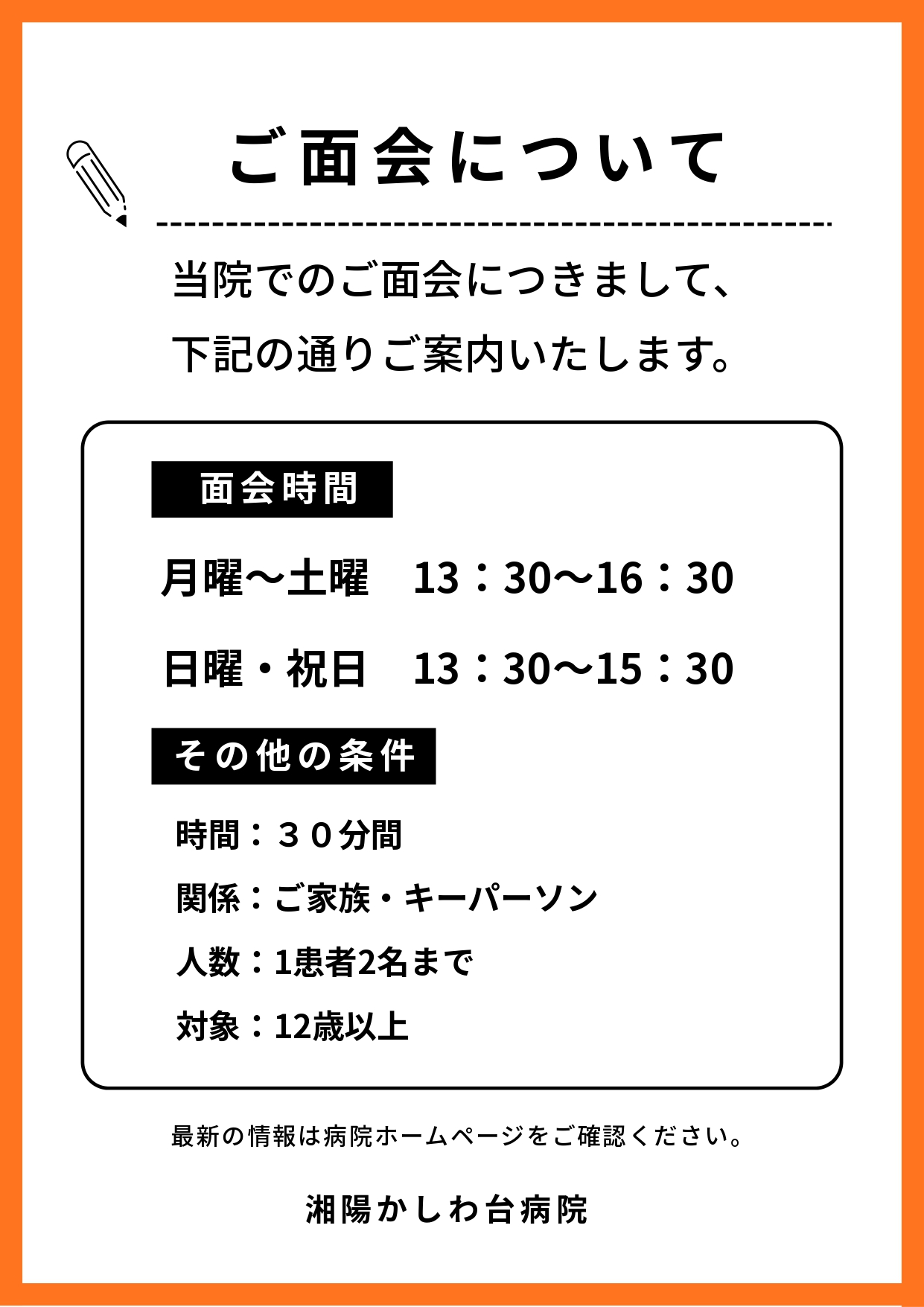 新館へご入院の患者様につきましては、下記の新館面会受付をご入力いただくことで、面会時間とリハビリ時間が重ならないよう調整することが可能です。